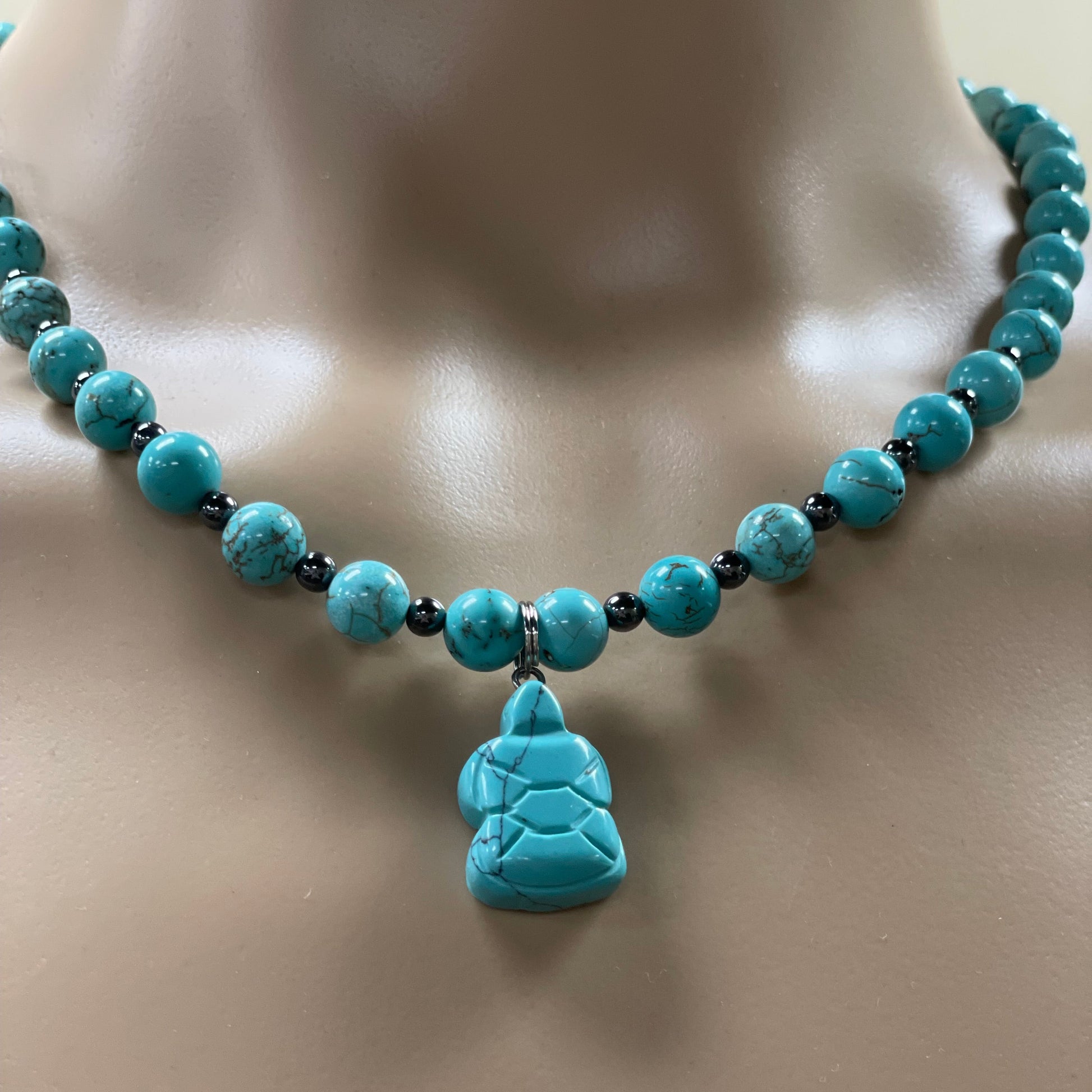 π’π· Tranquil Strength Turtle Necklace β 21.5β Turquoise & Hematite Balance Vibes