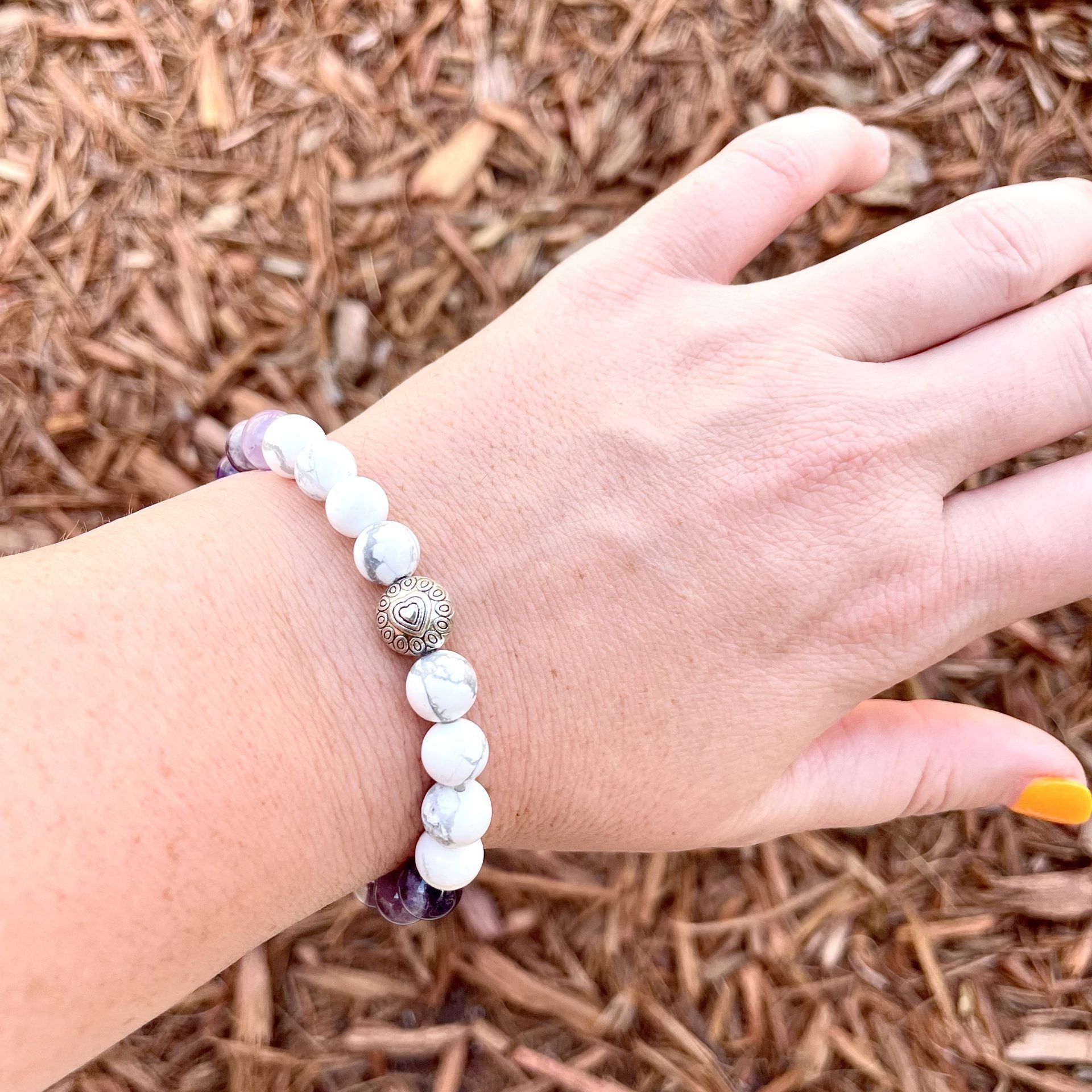 ππ€ Stretchy 8mm Howlite & Amethyst Heart Bracelet