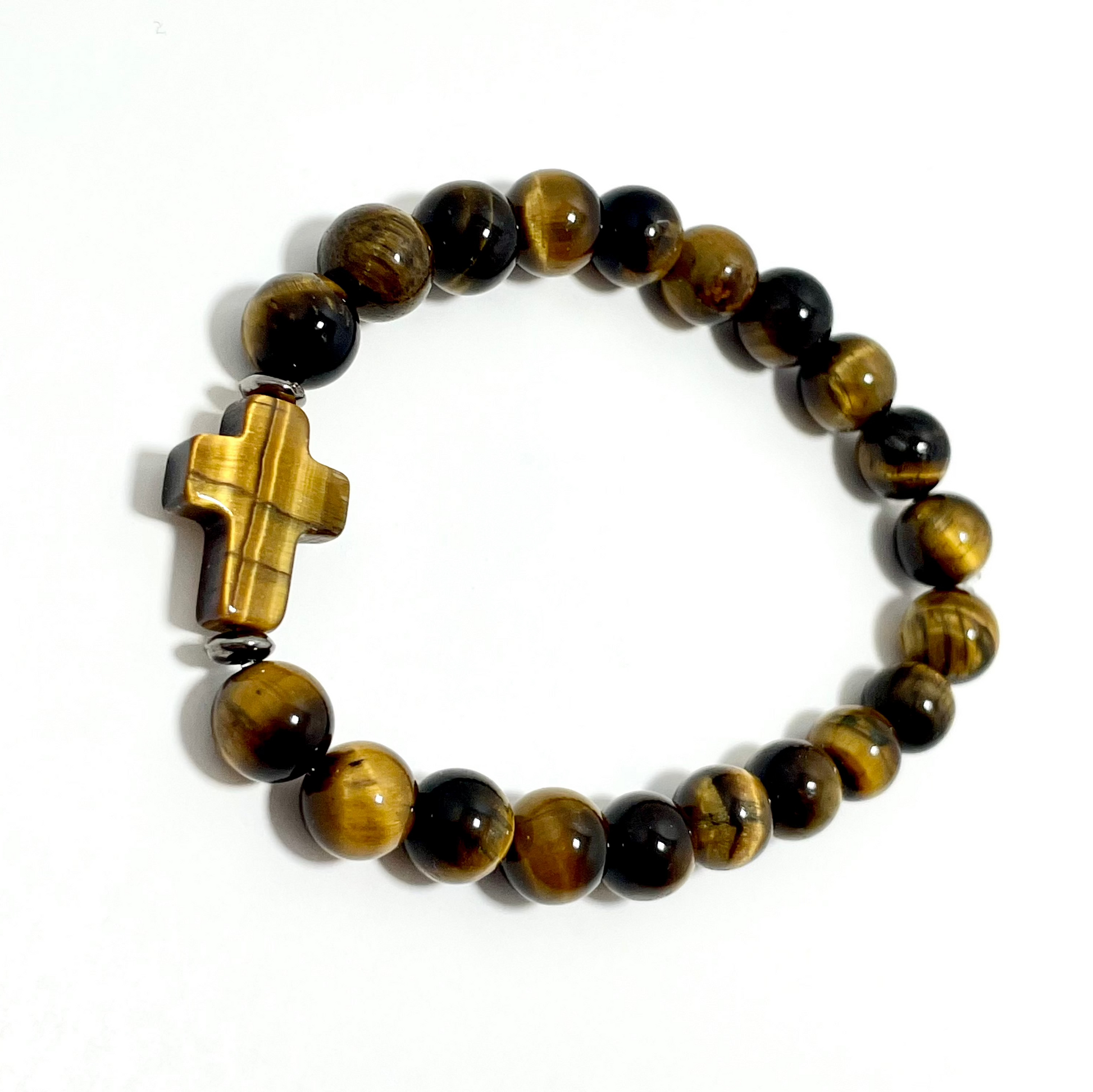 ✝️ Faithfully Rooted: 8mm Stretchy Tiger’s Eye Cross Bracelet