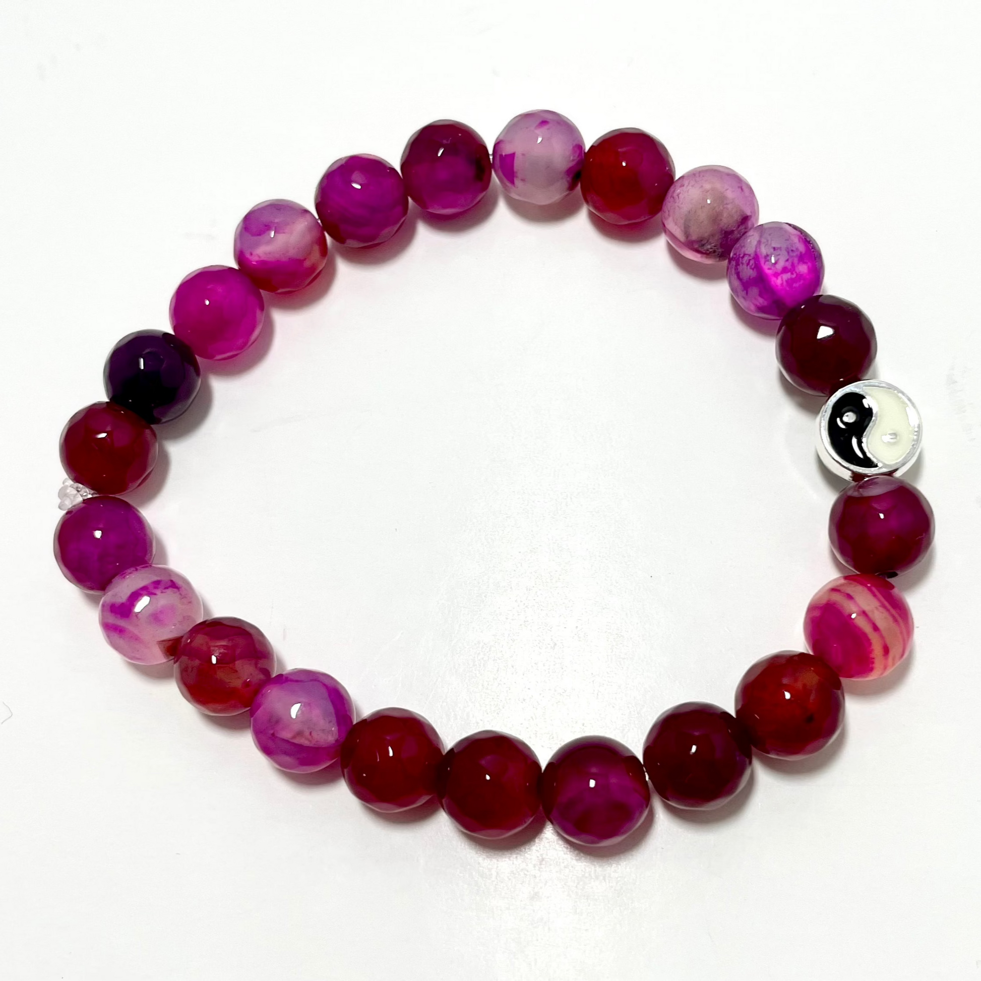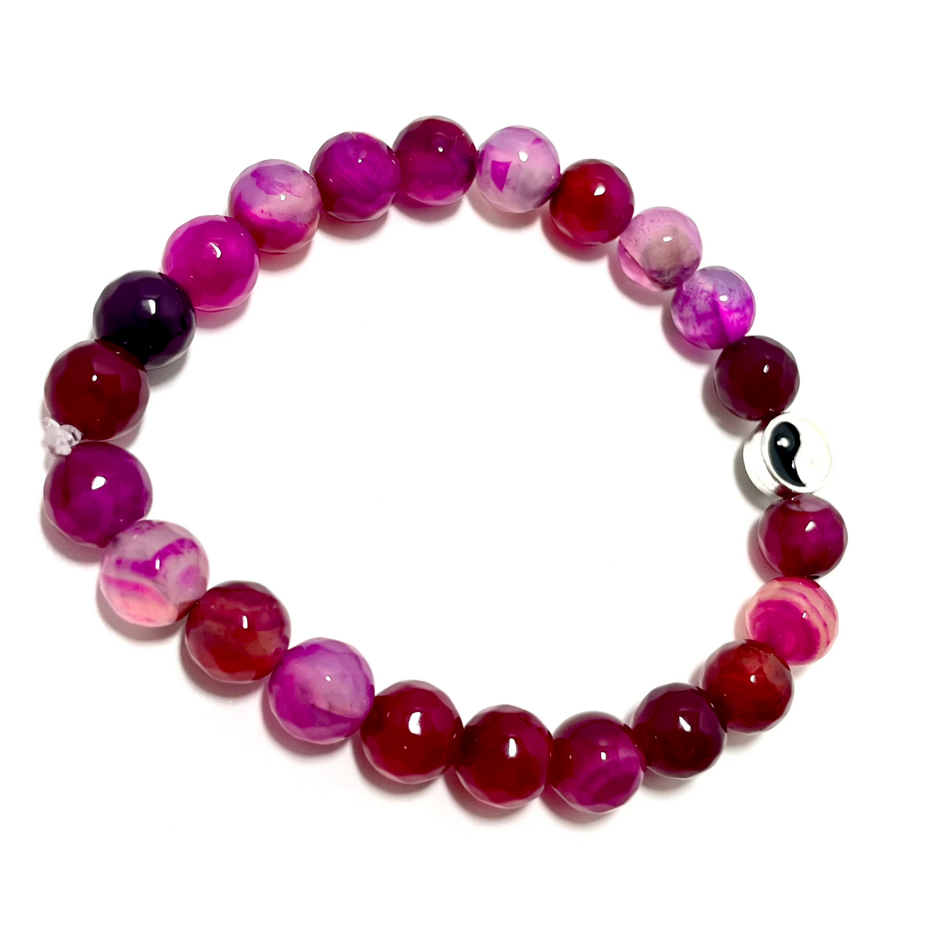 ☯️ 8mm Yin Yang Pink Agate Stretch Bracelet
