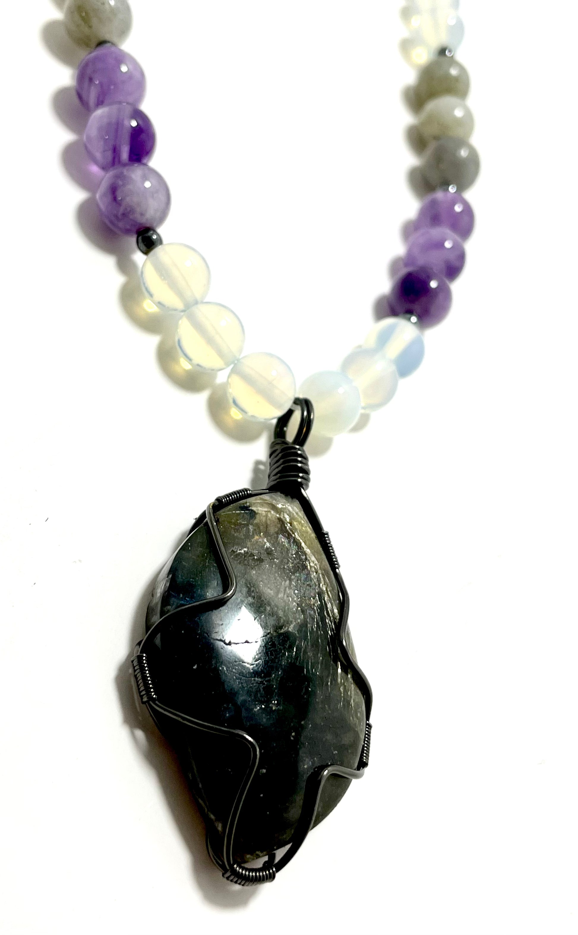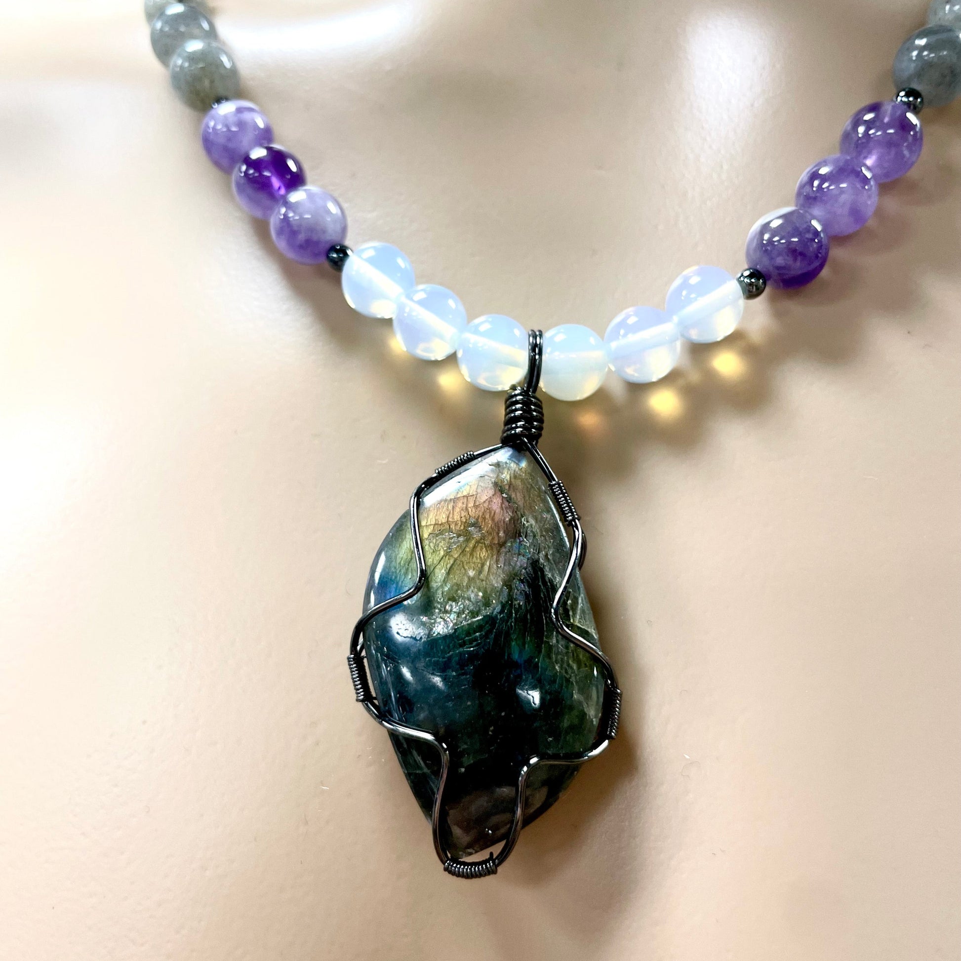 ππ Labradorite Dream Necklace β 22.5β Wire Wrapped with Amethyst & Opalite